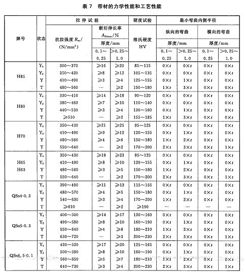 縱向室溫拉伸試驗、硬度試驗、90度彎曲試驗條件及性能要求,應達到下表規定: